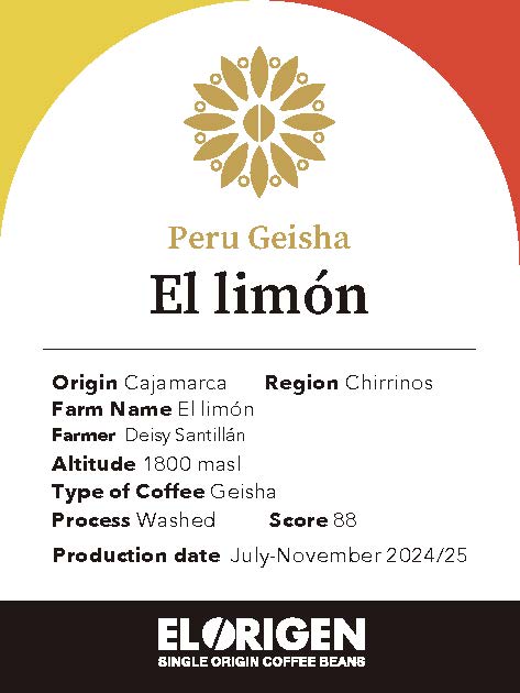 私たちEL ORIGEN(エルオリヘン)の誇るペルー産GEISHA「EL LIMÓN」。ペルー・カハマルカ州チリーノス地区の標高1,800メートルに位置する「El Limón農園」。この小さな農園で栽培されるゲイシャ種が、カッピングスコア88点という驚異的な評価を獲得しています。Deisy女史(デイシー)の笑顔と彼女が語る農園への愛情に深く感動したことを今でも鮮明に覚えています。彼女の物語を聞くたびに、このコーヒーが単なる商品ではなく、家族の歴史そのものだということを実感します。